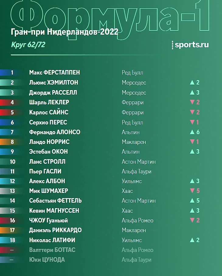 С этой точки зрения в группе лидеров некоторое преимущество должно быть у стартующего с поула Ферстаппена – только у Макса в топ-6 имеется в наличии совершенно новый комплект «софта».