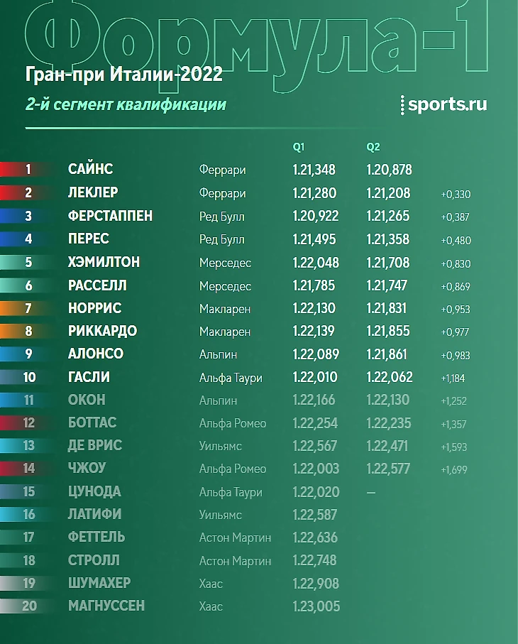 В этой ситуации борьбу за поул должны повести Шарль Леклер и Джордж Расселл. С другой стороны, учитывая такое количество штрафов у лидеров, в теории Макс Ферстаппен может выиграть поул даже с потерей 5 мест.