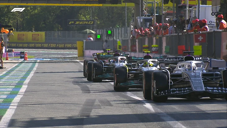 В зоне вылета располагаются две "Альфы Ромео", де Врис, Риккардо, и пока не выезжавший Цунода.