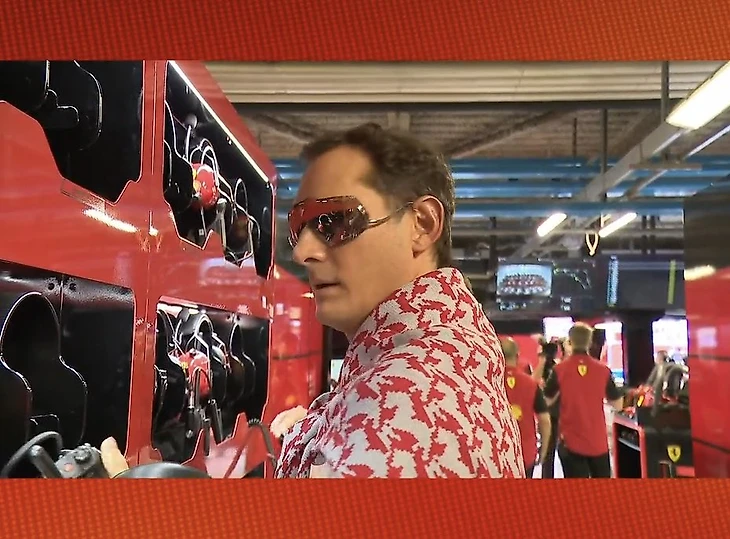 Президент "Феррари" Джон Элканн не мог не приехать на домашнюю гонку и следит за событиями из боксов. И как-то очень подозрительно смахивает на одного гонщика "Феррари" в прошлом.