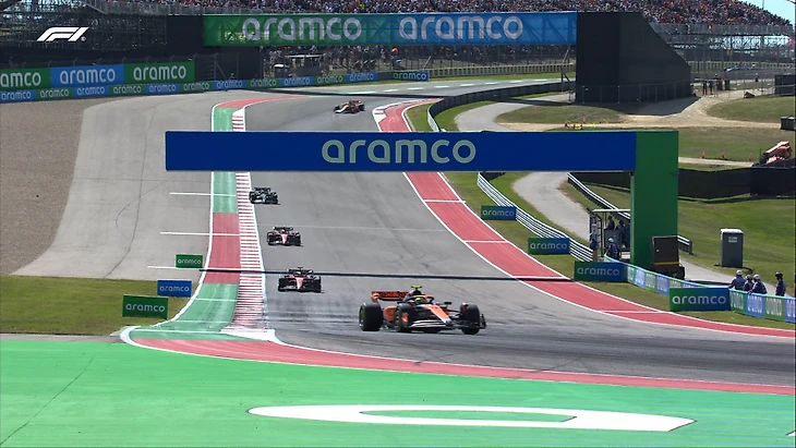 Норрис чуть лучше сорвался с места и в итоге обошел Леклера! Сайнс же прорвался на третье место! Ферстаппен 5-й, позади Хэмилтона.
