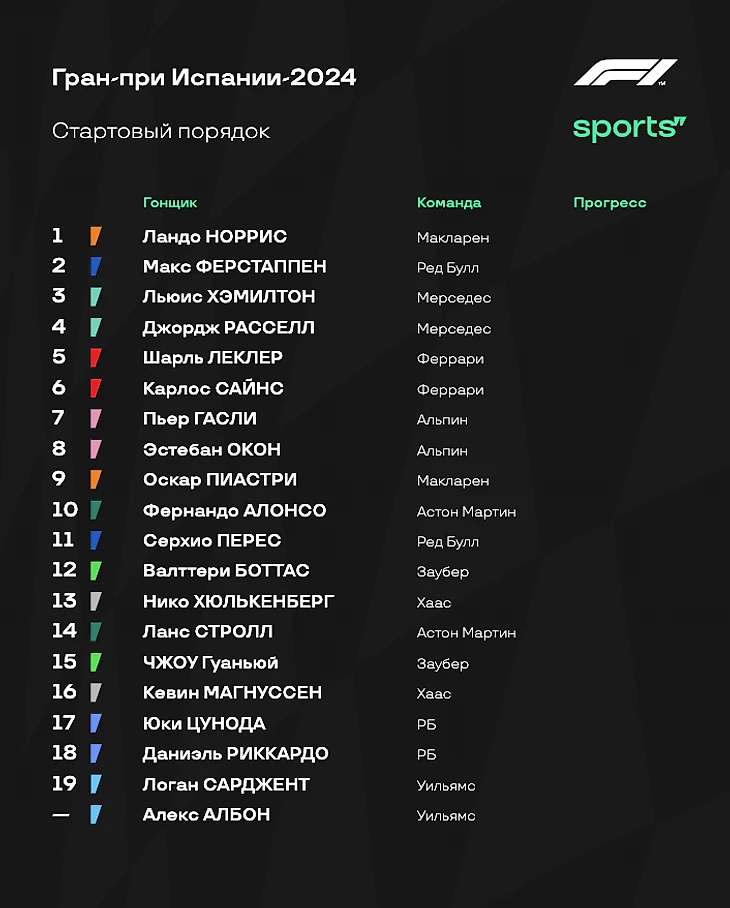 Гран-при Испании обещает быть интересным. Команды все вместе кричат о том, что за победу способен побороться кто угодно из топ-4. «Феррари», «Мерседес», «Ред Булл», «Макларен» - пилоты этих команд сегодня сразятся за первое место в Барселоне. По крайней мере в теории. На практике пока более-менее реалистичным кажется конкретно битва Ферстаппена и Норриса, однако и тут остаются вопросы. Ландо весь уик-энд утверждал, что гоночный темп «быков» невероятен, но в то же время он подтверждал, что в практиках «Макларен» уделил мало внимания изучению скорости на длинной дистанции. Иными словами, все это предположения - пусть и не совсем безосновательные. Посмотрим, как сложится в действительности.