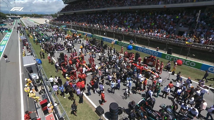 Команды готовятся к прогревочному кругу и началу гонки. А тем временем главный конструктор «Макларена» Роб Маршалл сказал, что преимущество в гоночных условиях на стороне «Ред Булл».