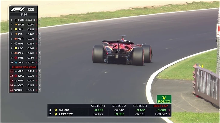 Прошло не совсем без проблем. У Леклера пока лучшее время дня, а вот Сайнс ошибся на втором секторе, зацепил гравий и чуть не разложил машину. Все обошлось, но круг был испорчен.