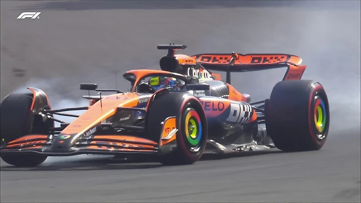 К слову, Пиастри тоже ошибся на торможении и срезал шикану.