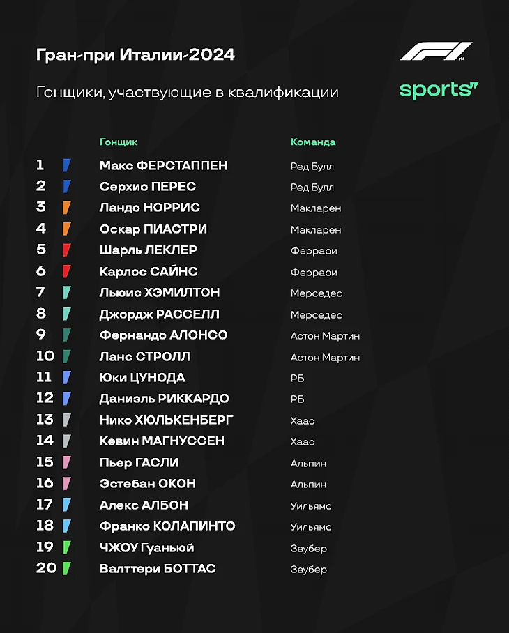 31 августа состоится квалификация к 16-му этапу «Формулы-1» сезона-2024, Гран-при Италии.