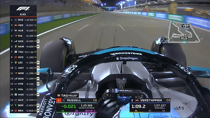 И все-таки пошли обновления результатов. Джордж Расселл проезжает лучший круг дня с результатом 1.29,545. Макса он опередил всего на 0,021 секунды. В общем плотность запредельная.