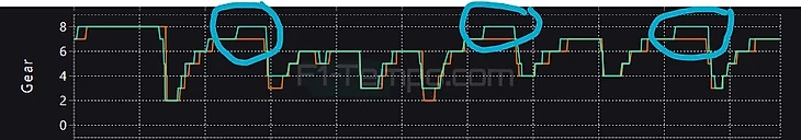Ландо пока несильно атакует. Эксперт Эдд Строу не наблюдает проблем с задней частью «Макларена», которая могла бы ограничивать пилотаж (о чем говорил пилот), однако это как раз может быть связано с тем, что Норрис толком не разгонялся. К примеру, вчера на своем лучшем круге (и лучшем круге сессии) Ландо использовал восьмую передачу только раз - в то время как Джордж Расселл переходил на нее четырежды (на телеметрии ниже).