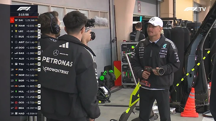 А вот и обещанные тесты систем от ФИА в последние пять минут сессии. Ближе к концу увидим тренировочный старт.