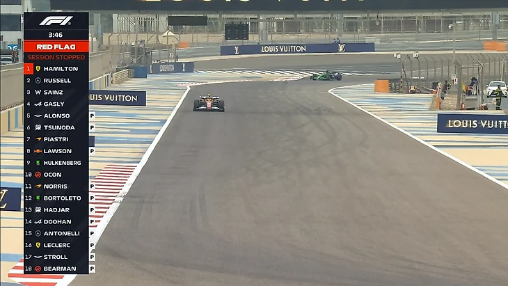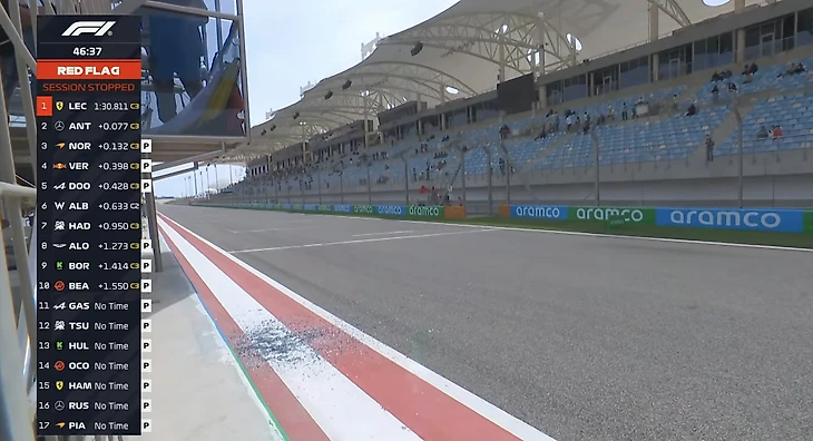 Спустя несколько минут сессию возобновили, затем вновь прервали красными флагами.