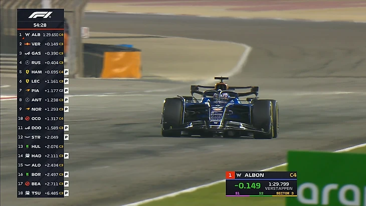 Лучшее время круга уходит Албону - Алекс проехал за 1.29,650, что на 0,150 быстрее Макса.