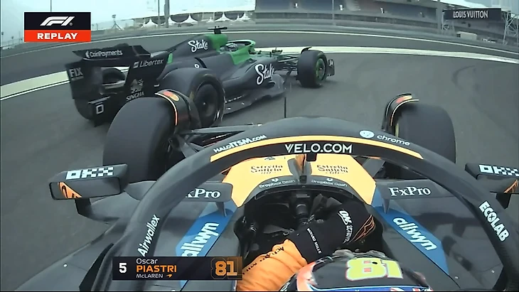 К слову, у тех, кто занимается симуляцией гонки, все максимально серьезно. Вот, например, как Пиастри обошел Окона по внешней траектории на пути к первому повороту.