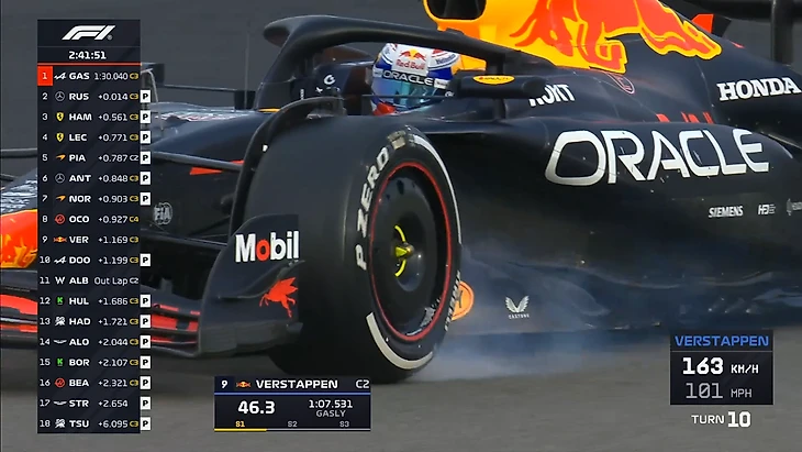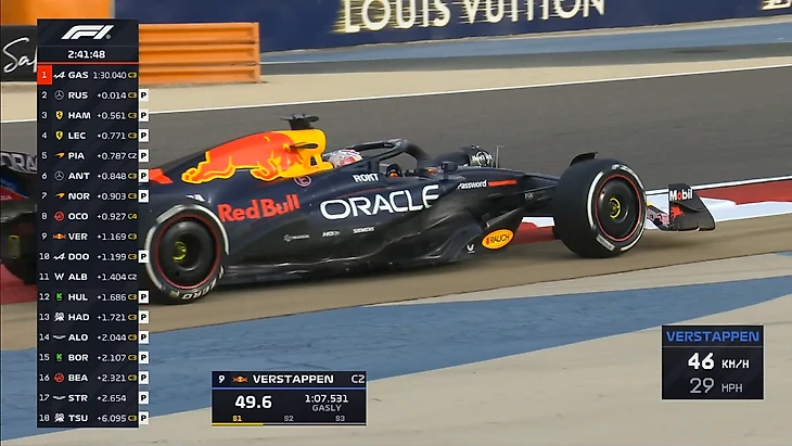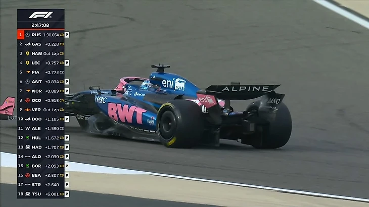В протоколе сменился лидер - Пьер Гасли на «Альпин» обошел Джорджа Расселла. Ферстаппен шел на хорошее время, но потом чуть сдал и в результате показал лишь третий результат.