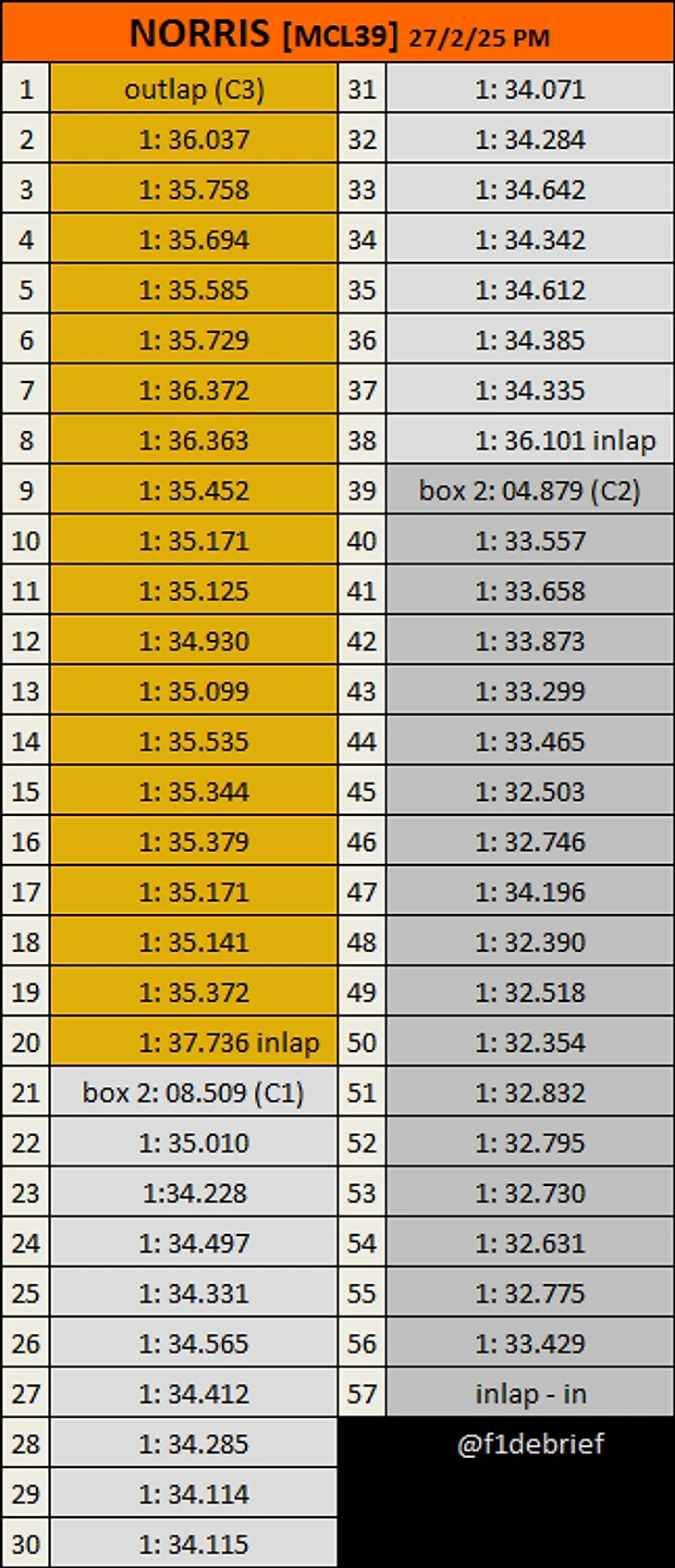 Вот сколько пока что проехали пилоты. У Норриса всего 9 кругов - а до финиша второго дня тестов всего 2 с лишним часа.
