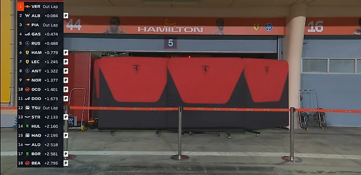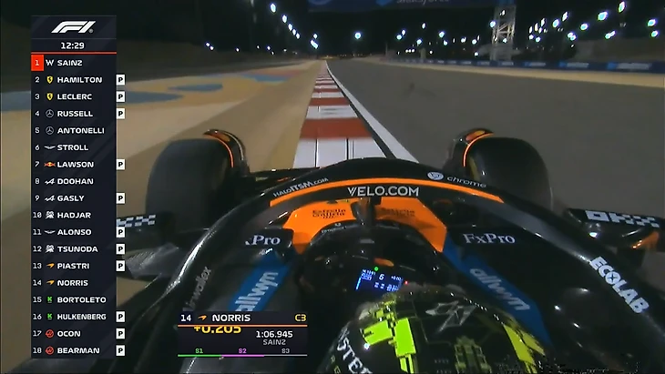 Гонщики активно тренируют старт с места на выходе с пит-лейн, проезжают круги. На трассе Лоусон, Антонелли, Дуэн, Леклер, Норрис, Бортолето, Бермэн и Аджар.