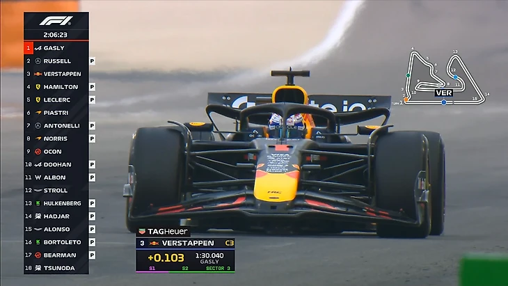 Макс Ферстаппен работает на более коротких отрезках и установил лучшее для себя время дня. Правда оказался при этом лишь на третьей позиции, уступив Гасли и Расселлу 0,1 секунды.