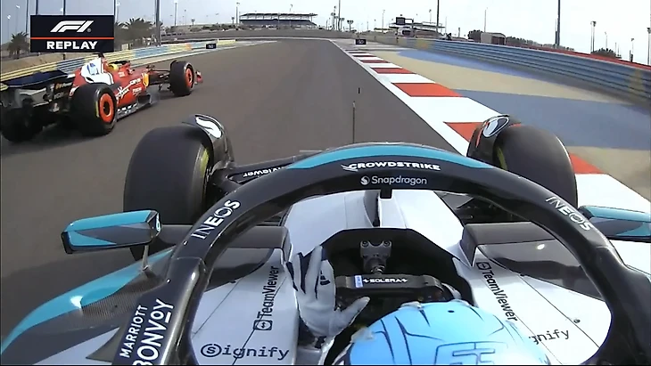Встреча бывших напарников на трассе - в кадре Расселл и Хэмилтон.