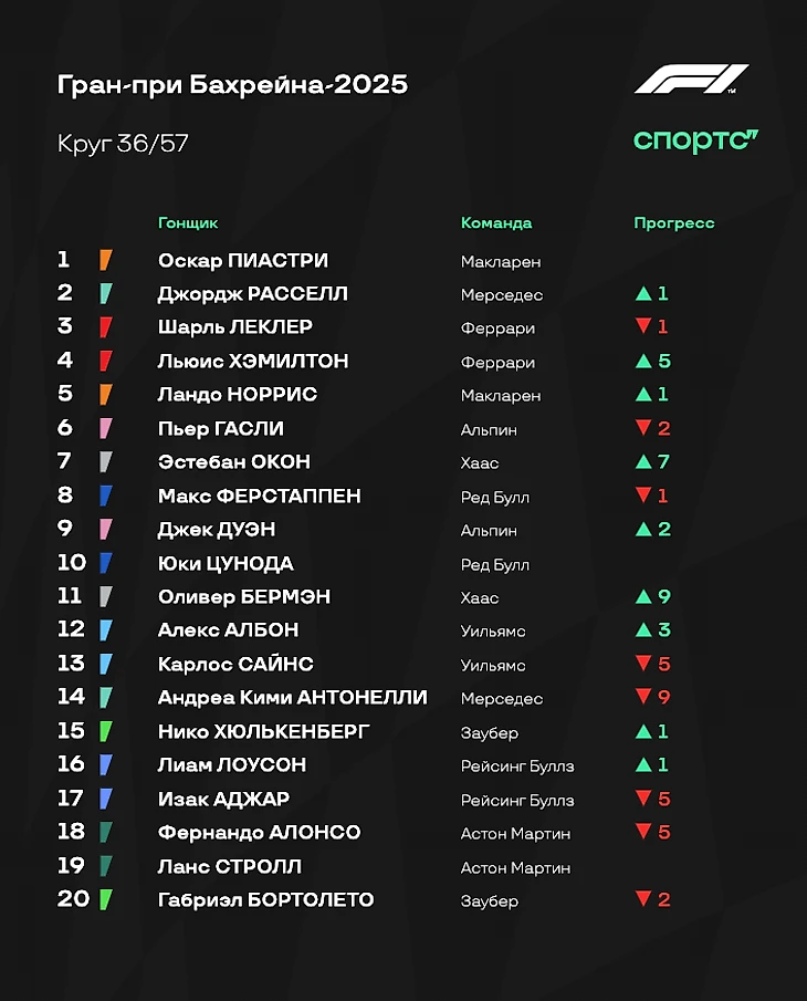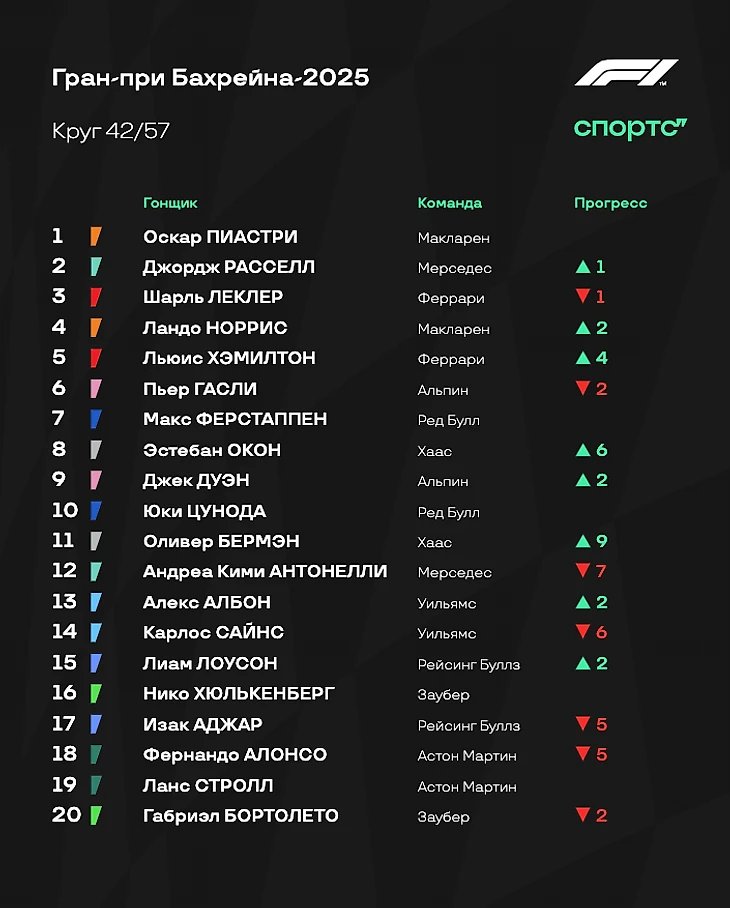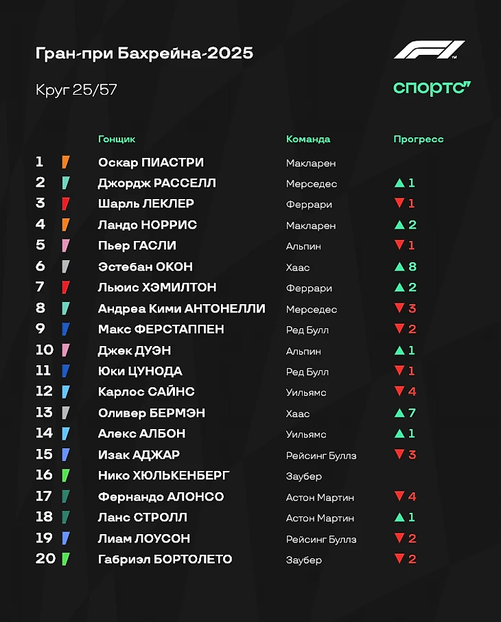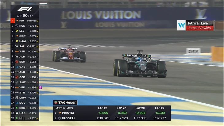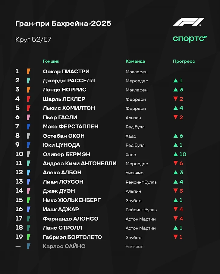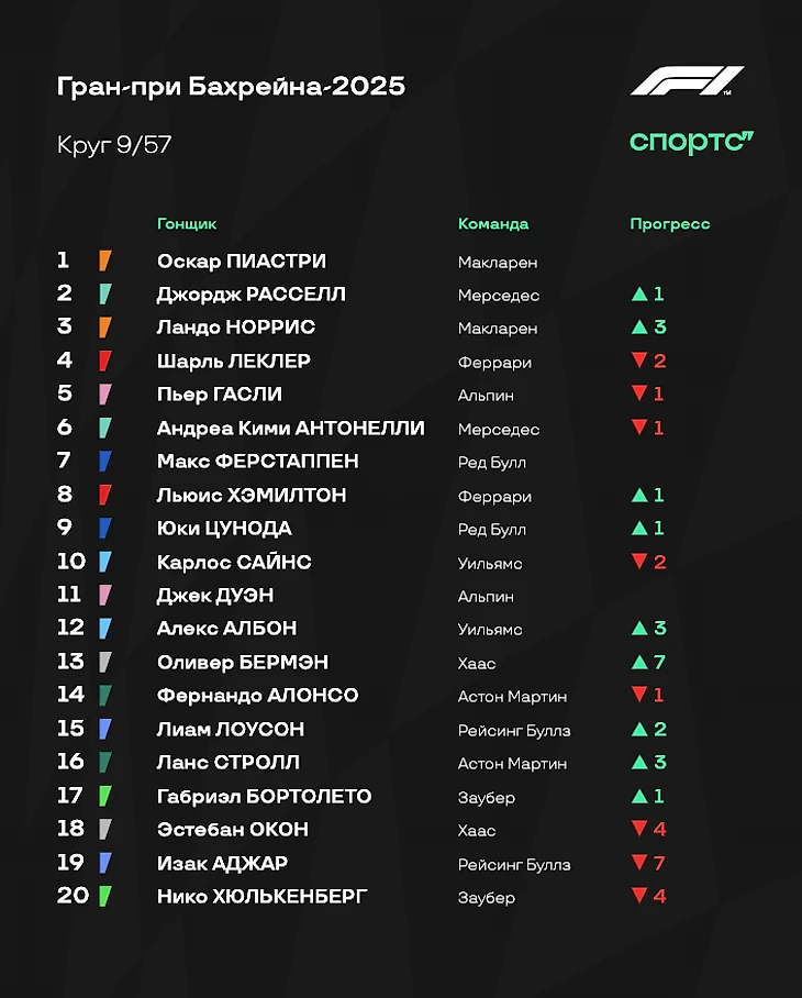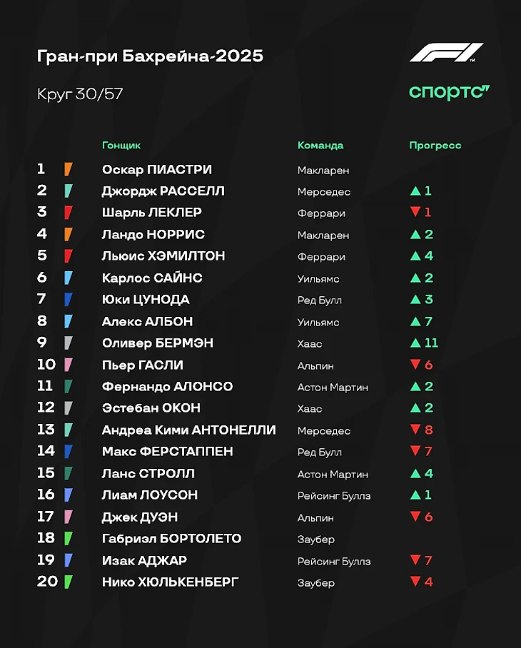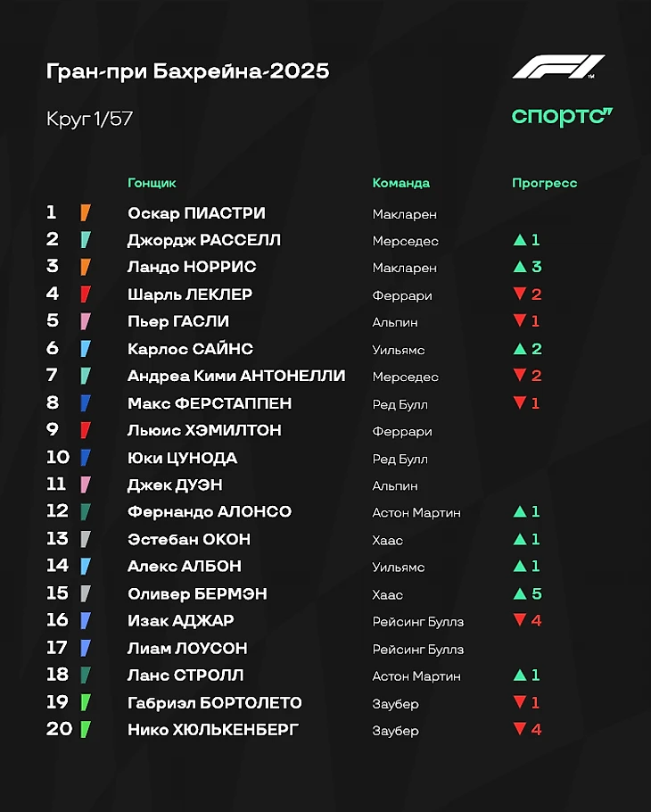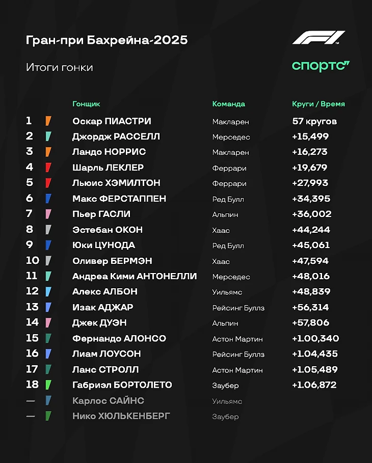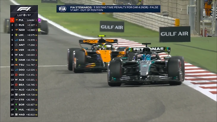 Доминация Пиастри и прорыв Норриса в Бахрейне, Расселл сохранил подиум