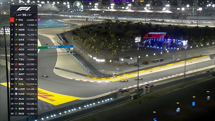 Пиастри довольно бодро догоняет Хэмилтона. Отрыв сократился до 4 секунд. При этом Леклер уехал от Льюиса на 10 секунд.