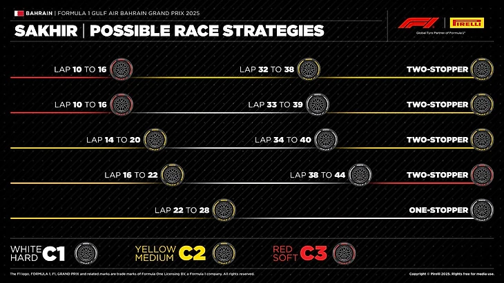 Из-за высокой абразивности старого асфальта на трассе в Бахрейне в «Пирелли» абсолютно уверены, что команды пойдут на тактику минимум с двумя пит-стопами. И на этот раз им и правда можно верить. Хотя кто-то все равно попытается провернуть трюк с одним пит-стопом.
