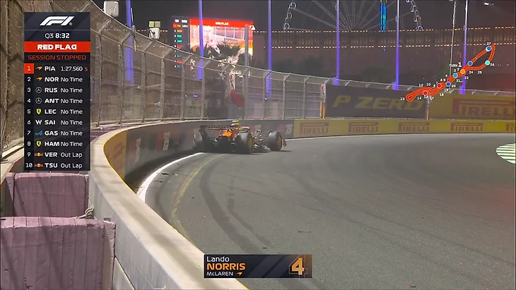 Так, болид Норриса убрали, обломки с трассы тоже. Сессия возобновляется.