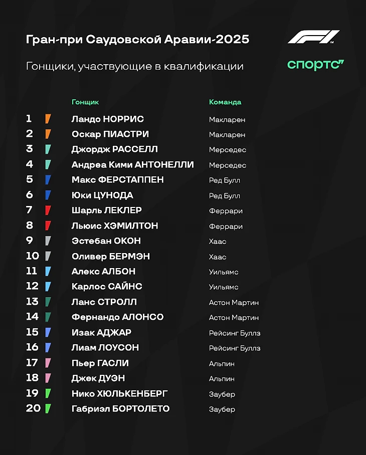 19 апреля состоится квалификация к пятому этапу «Формулы-1» сезона-2025, Гран-при Саудовской Аравии.
