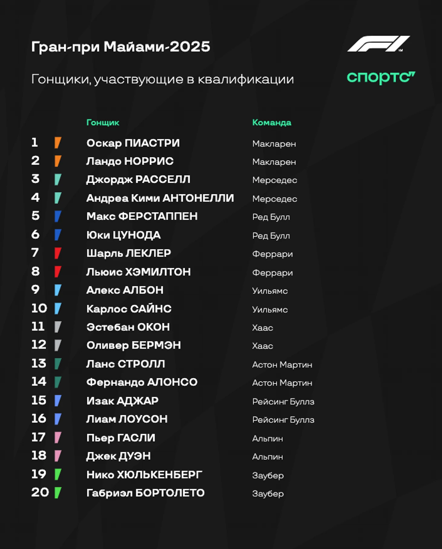 3 мая состоится квалификация к шестому этапу «Формулы-1» сезона-2025, Гран-при Майами.