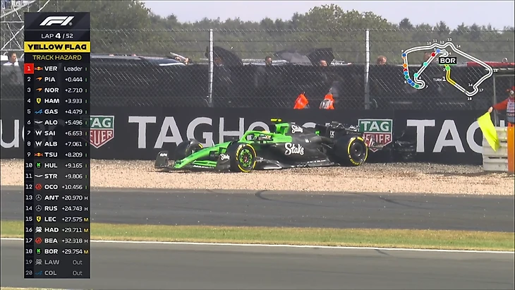 Льюис атакует Норриса но не может завершить маневр! На трассе желтые флаги - Лоусон вылетел с трассы и сошел.