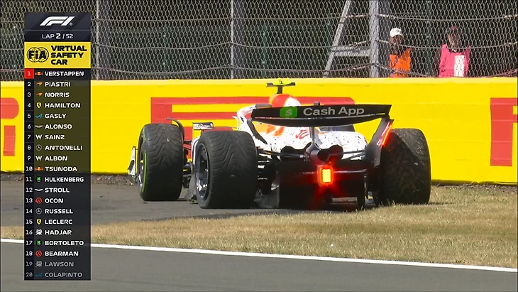 Пиастри оштрафовали на 10 секунд за резкое торможение пелотона за машиной безопасности! Норрис - новый виртуальный лидер Гран-при Великобритании!