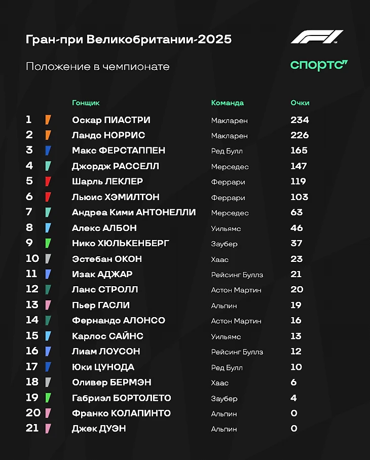 6 июля состоится Гран-при Великобритании, 12-й этап «Формулы-1» сезона-2025.