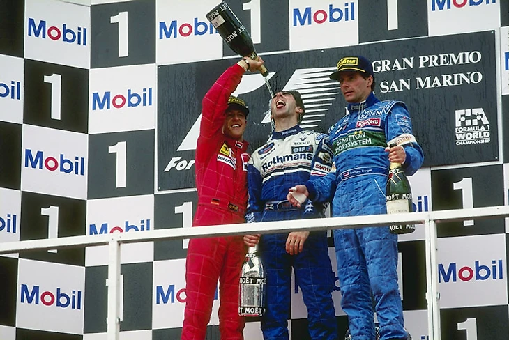 На этапе в Имоле в 1996 году Шумахер завоевал первый поул в составе «Феррари». Из-за пробуксовки на старте двукратный чемпион откатился на третье место, но уже на втором круге смог опередить Дэймона Хилла и «сел на хвост» Дэвиду Култхарду из «Макларена». До первой волны пит-стопов статус-кво сохранялся, однако за счет более поздней остановки Михаэль смог все-таки выйти вперед шотландца. И все бы ничего, но оказалось, что Хилл, отстававший на первом отрезке, идет на тактике одного пит-стопа. С пустыми баками Дэймон взвинтил темп, отыграл все отставание, а после заключительной волны пит-стопов он оказался впереди и больше ни разу не уступал плидерство. Шумахер с двумя пит-стопами завершил гонку вторым.
