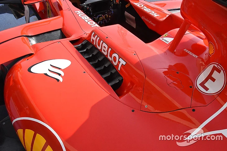 В «Феррари» начали с того, что расширили выходные отверстия по бокам от кокпита – техническую инспекцию в четверг машина проходила с новой, более длинной панелью.