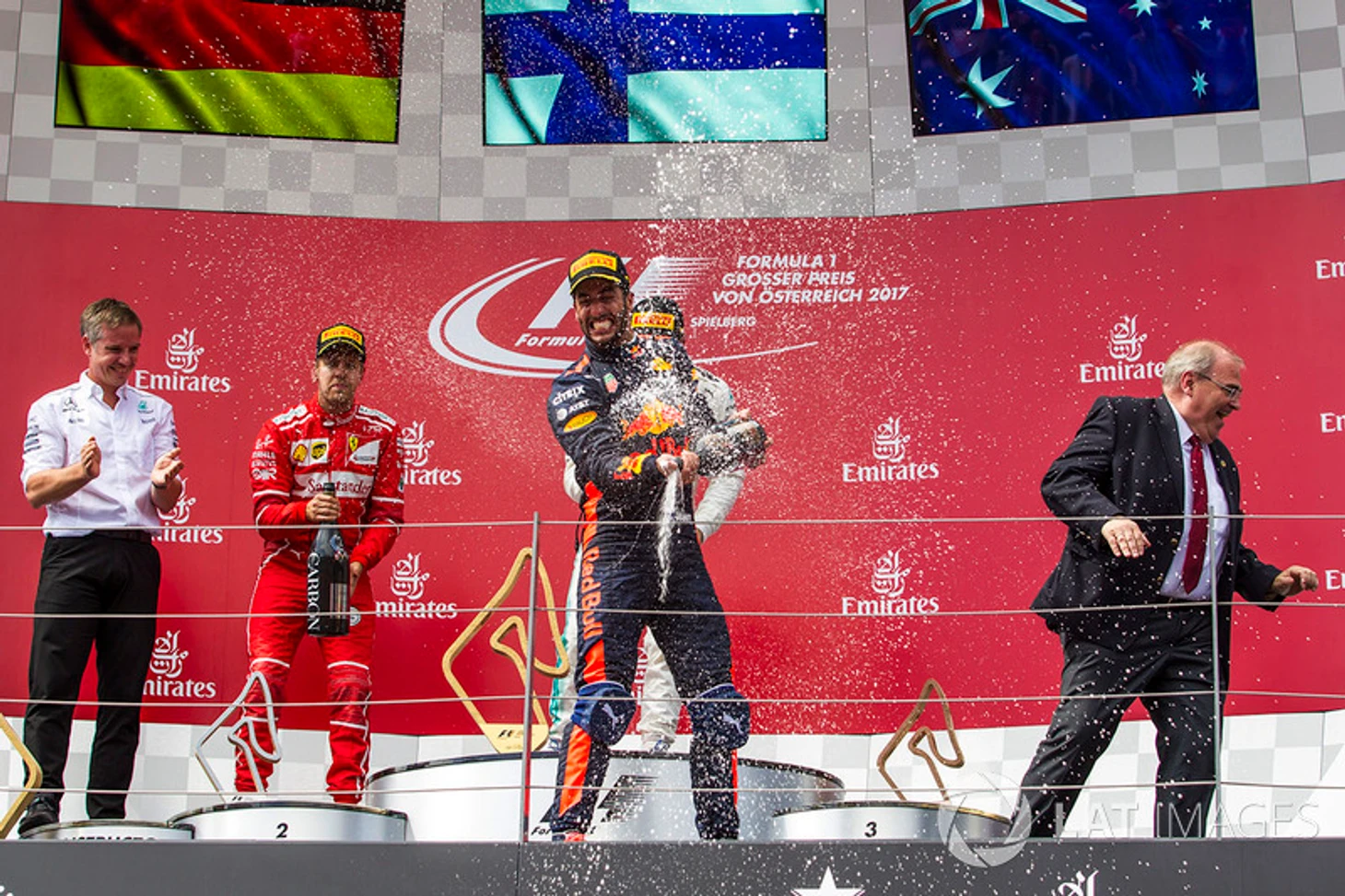 «Гонка была весёлая, и мой обгон Кими Райкконена на старте стал решающим моментом», - признается Риккардо. – «А на последних кругах мне пришлось отражать атаки Льюиса Хэмилтона, он был совсем рядом, но мне удавалось тормозить на пределе и удерживать позицию. Пять подиумов подряд – это прекрасно, но особенно приятно, что я финишировал третьим в Австрии, на домашней трассе Ред Булл! В прошлом году здесь на подиум поднялся Макс Ферстаппен, и я ему немного завидовал – здорово, что теперь это удалось мне! Думаю, самым сложным был предпоследний круг, когда Льюис воспользовался DRS, тогда как я проехал тот круг не лучшим образом. Он был совсем близко, и я рад, что увидел клетчатый флаг раньше него».