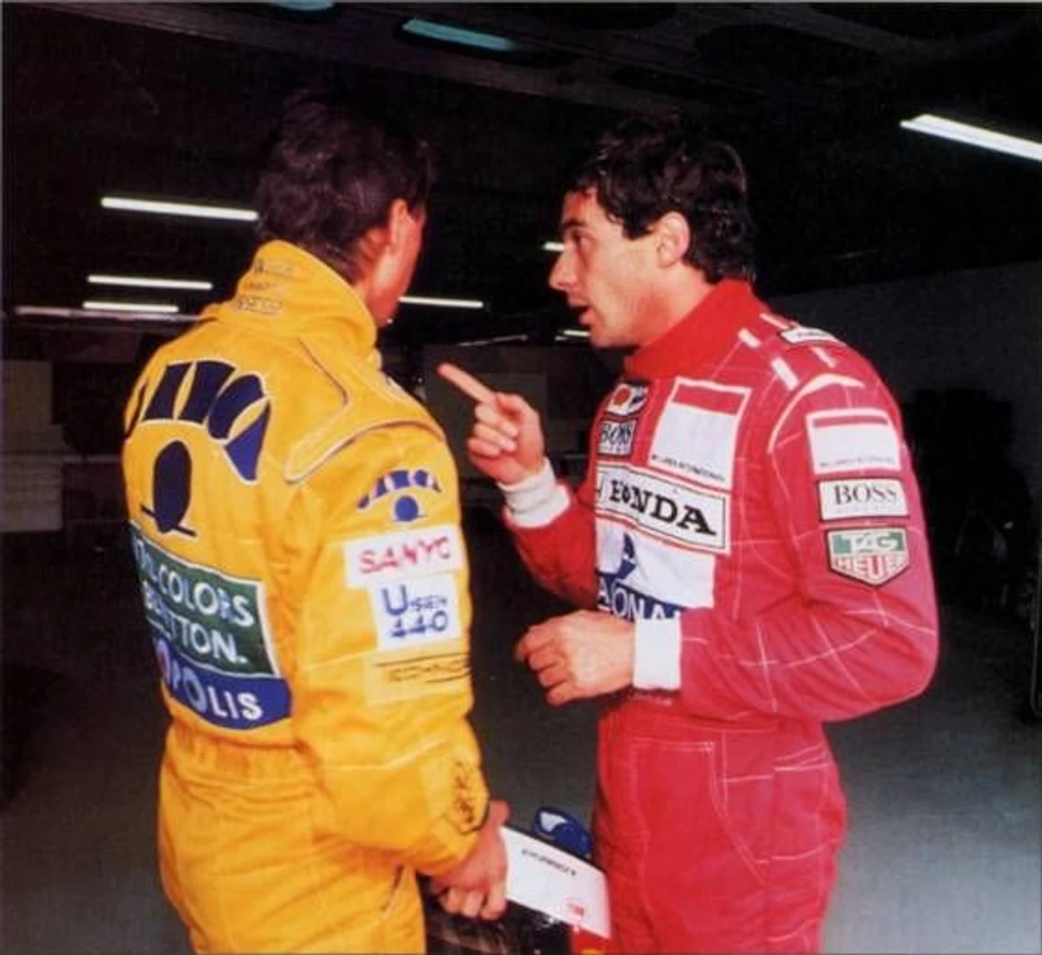 Нужно заметить, что и для Сенны, и для Шумахера кулачные бои на «Сузуке» были далеко не первыми. Однажды, в Хоккенхайме ’92, они даже едва не подрались между собой. Сенна был взбешен опасными маневрами Солнечного Мальчика, за три недели до этого уже выбившего его из гонки в Маньи-Куре, и лишь вмешательство третьих лиц позволило охладить пыл двух величайших пилотов XX века.