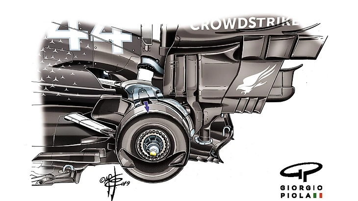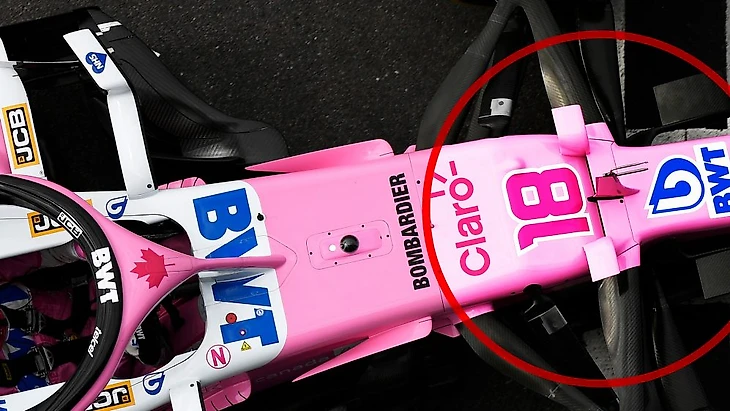 Также в передней части болида «Рейсинг Пойнт» можно увидеть S-образный воздуховод, тогда как «Мерседес» никогда не использовал его в подобных целях.
