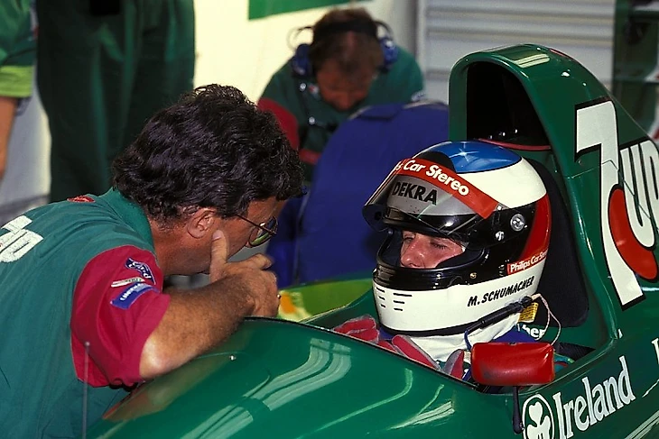 «Послушай меня, малыш». Руководитель команды Эдди Джордан дает Шумахеру несколько советов перед дебютом в «Формуле-1» на Гран-при Бельгии 1991 года. Немец заменил в «Джордане» Бертрана Гашо, заключенного в тюрьму за нападение на водителя такси в Лондоне. Его напарником стал Андреа де Чезарис.