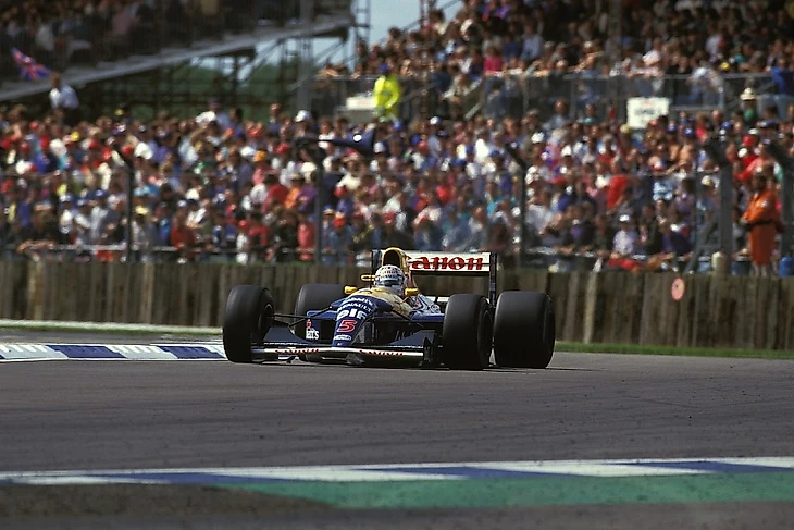 На фото запечатлен Мэнселл, доминирующей на Гран-при Великобритании 1992 года.