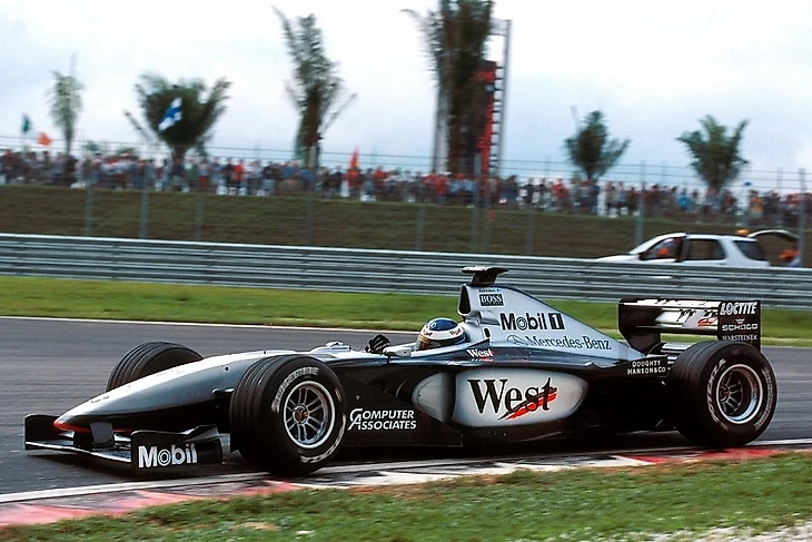 Серебряные стрелы возвращаются. Ну вроде как. «Мерседес» вернулся в «Формулу-1» в 1994 году в качестве поставщика моторов для команды «Заубер», а затем в 95-м году переключился на «Макларен». Команда приобрела серебряные оттенки, когда вместо Marlboro ее спонсором стал West в 97-м. Хаккинен выигрывает титул в 1998 и 1999 годах…