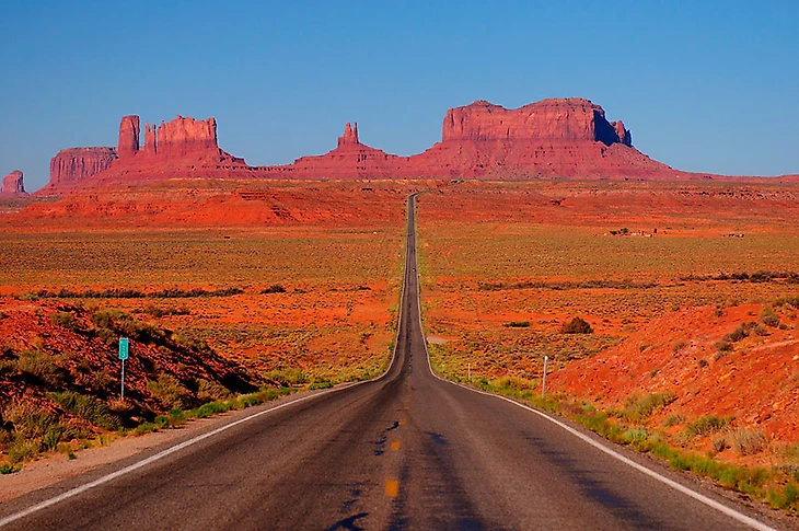 Еще больше мы знаем шоссе, которое проходит через это место. Знаменитое Scenic Byway 163 изгибается от Кайенты, штат Аризона, до Блу, штат Юта. Из всех миллионов акров, разбросанных по юго-западной пустыне, 2,5-мильный участок дороги к югу от Мексикан Хат, возможно, является самым известным, увековеченным в классических фильмах про автомобили, таких как: «Беспечный ездок» (1969), «Изо всех сил» (1987), «Тельма и Луиза» (1991), «Каникулы» (1983), «Неуловимый» (1997). Там дорога превращается в точку, обрамленную оранжево-коричневыми башнями.