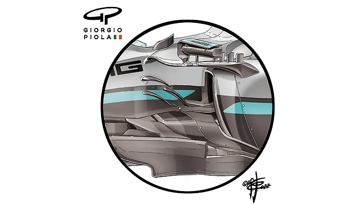Перед входом в боковые понтоны была добавлена поворотная лопасть, призванная улучшить эффективность охлаждения (изображение выше).
