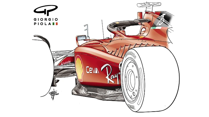 Две самые большие инновации сезона были представлены на одном и том же автомобиле – «Феррари» F1-75. Его аэродинамика с отвесными боковыми понтонами и их уникальным каналом на верхней поверхности обеспечила великолепное сочетание характеристик эффективности днища и заднего антикрыла.