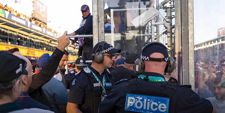 Кстати, пит-лейн во время подиума тоже попытались взять штурмом – австралийский фотограф «Ф-1» Ким Ильман показал на ютуб-канале, как их отгоняли с полицией.