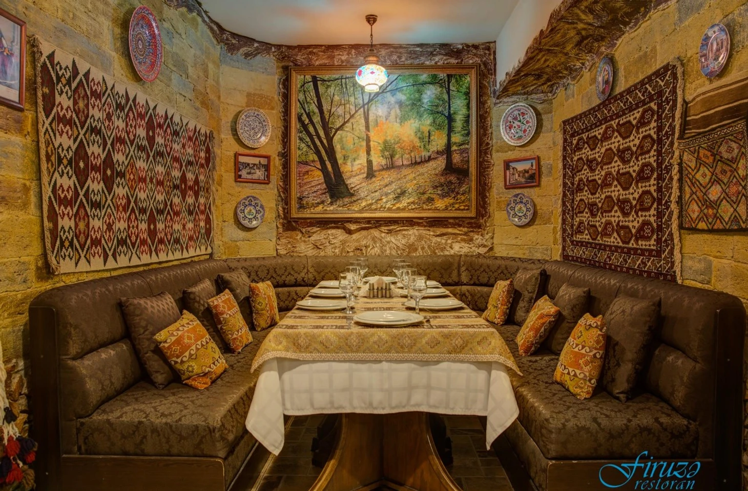 На оживленной площади Фонтанов в самом центре города находится ресторан «Фируза» – в бывшем подвале. Он популярен традиционным меню, включающим долму, плов (пловы), бурлящие горячие котлы и впечатляюще представленные кебабы, в окружении очаровательного декора с коврами ручной работы, теплой и гостеприимной атмосферой.