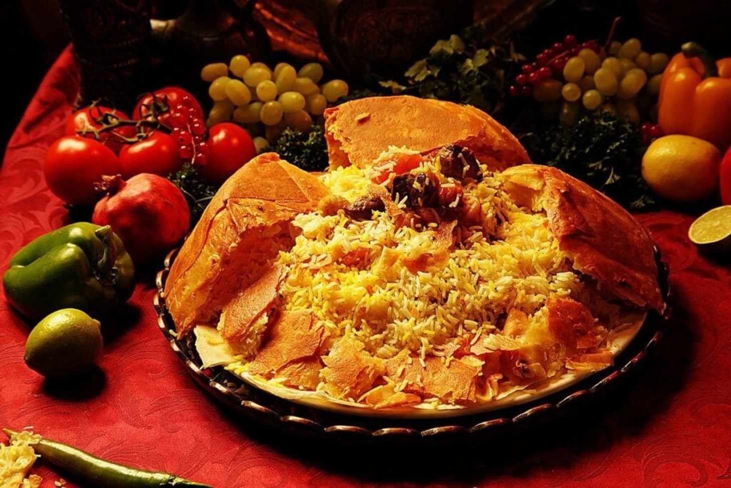 Этот разнообразие блюд, напоминающее большой пирог, создается путем помещения различных комбинаций риса, мяса, сухофруктов и орехов в круглую корочку из лаваша, тонкой лепешки, и запекания ее до хрустящей и золотистой корочки. Затем лаваш разрезают на порции, чтобы открыть ароматную начинку, и запивают бокалом местного азербайджанского вина, которого в ресторане «Арт Клуб» очень много.