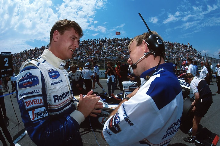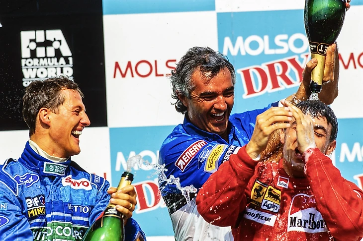 Если в квалификации только Шумахер был быстрее пилотов «Феррари», то вот в гонке к ним подобрался новый лидер «Уильямса» ─ Дэймон Хилл.