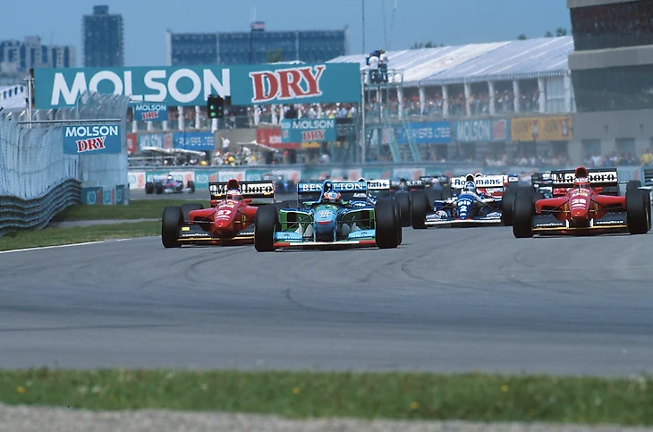 Старты в Гран-при 94-го интересны, и Канада не стала исключением. Шумахер сорвался с места, оставив лишь лёгкий след от дыма от шин, и «Феррари» последовали его примеру. «Уильямс», напротив, буксовал колёсами. Култхард, как это свойственно ему, отлично стартовал и опередил Хилла, который на мгновение застрял с избыточной пробуксовкой колёс и добрался до первого поворота только пятым, опередив сражающихся Эдди Ирвайна и Рубенса Баррикелло на «Джордан-Харте», которые зажимали «Макларен-Пежо» Мики Хаккинена.