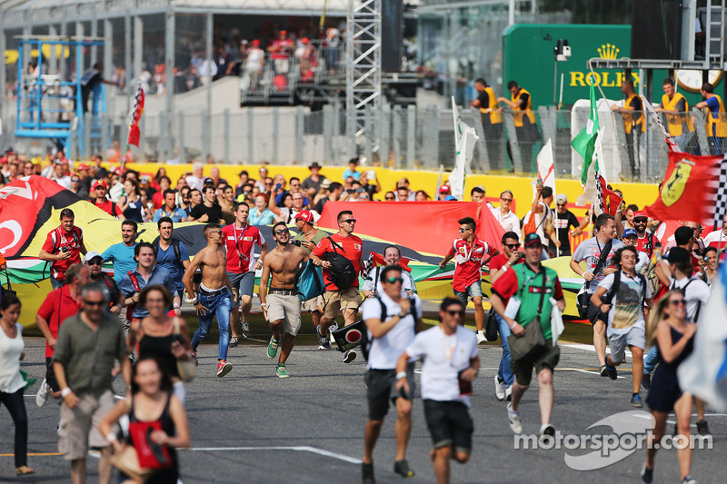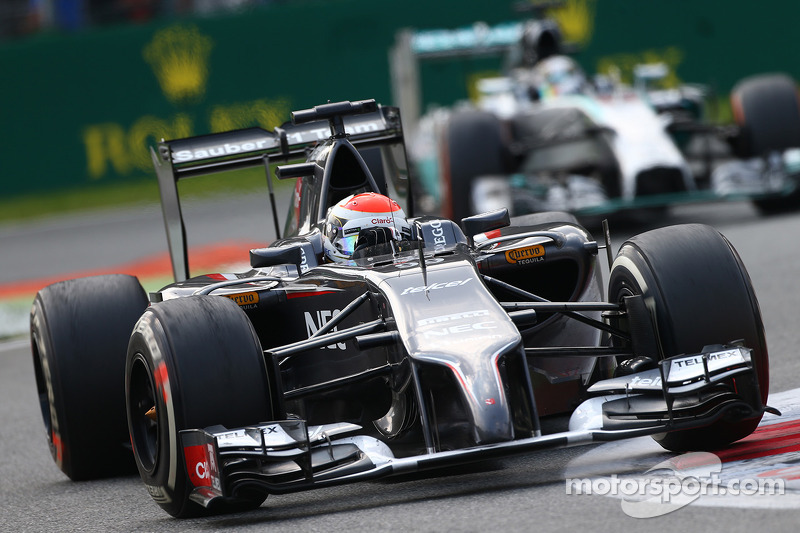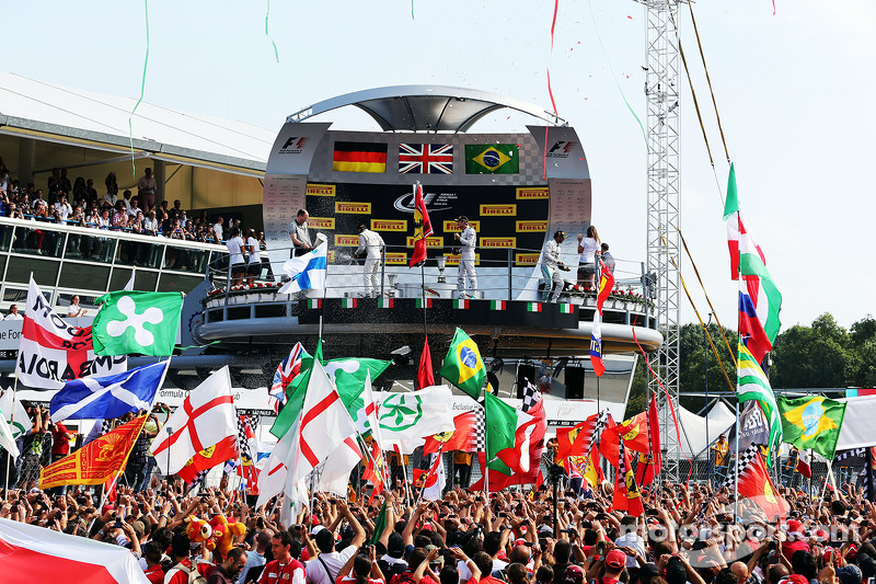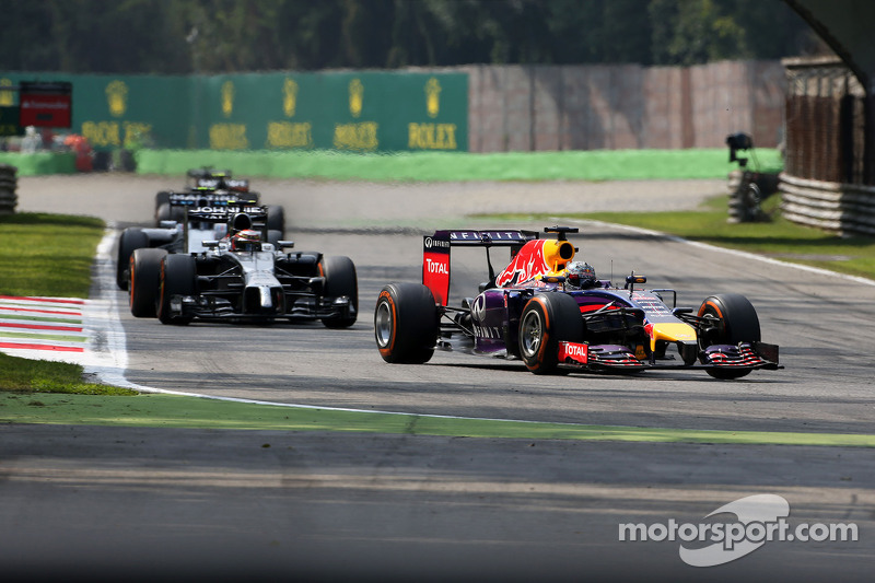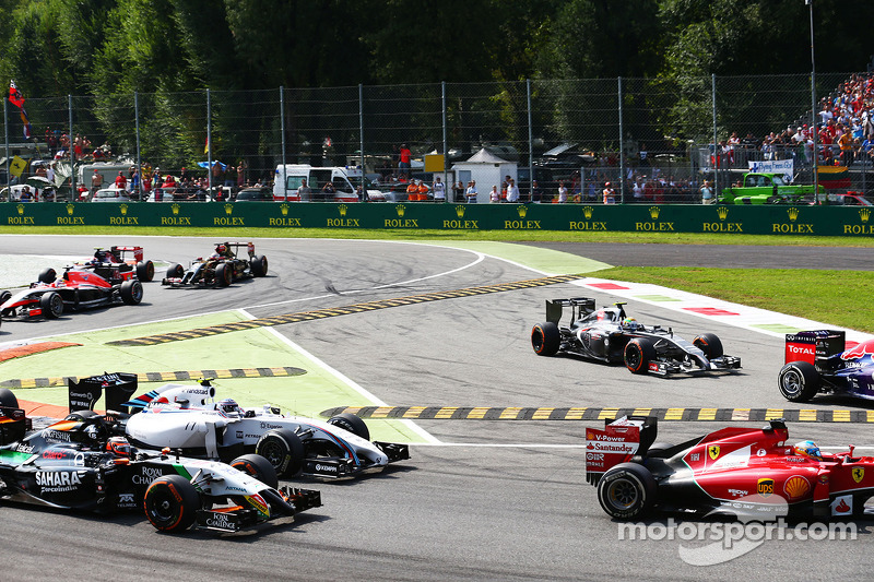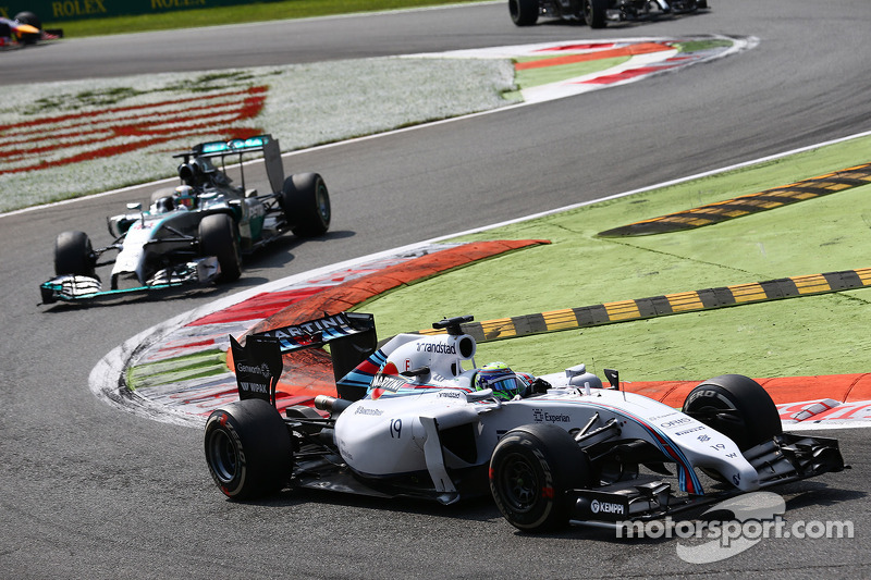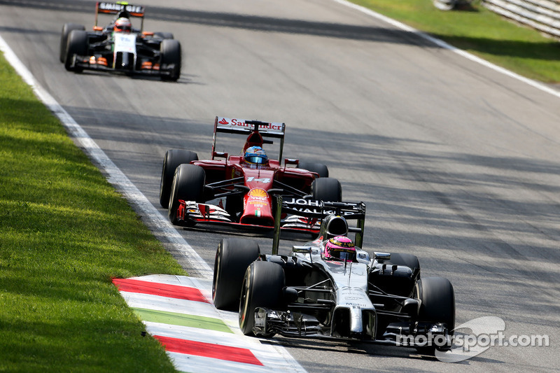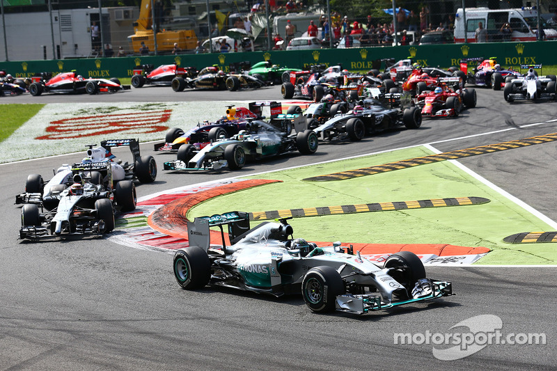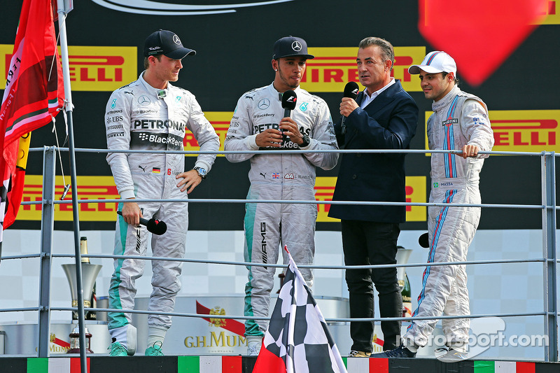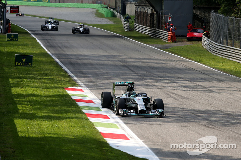 Британец оказался на четвертом месте, но Росберг совершил ошибку в шикане Rettifilo на 9-м круге, что позволило сократить отставание с 3.9 до 2.3 секунды. Хэмилтон прошел Магнуссена уже на пятом круге, а затем Массу на 10-м круге, после чего, погоня началась.