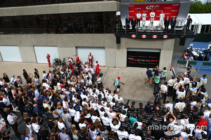 «Я люблю Монреаль!», признался Хэмилтон. «Приятно вновь выиграть на трассе, где в 2007-м я одержал первую победу. Команда отлично справилась – я благодарен им за это. Не могу сказать, что почувствовал облегчение, ведь в двух последних гонках я был очень быстр, но я счастлив завоевать ещё одну победу для себя и команды. После пит-стопа отрыв был минимальным, Нико ехал позади и сэкономил больше топлива, поэтому мне тоже пришлось его экономить, контролируя интервал. Каждый круг мы проезжали почти в одинаковом темпе, несколько раз я блокировал шины, к счастью, это не привело к проблемам – я чувствовал, что всё под контролем. От имени всей команды я хочу посвятить эту победу памяти отца моего инженера Боно, который скончался на прошлой неделе. Боно было очень непросто, но он фантастически провёл уик-энд, так что эта победа – его».