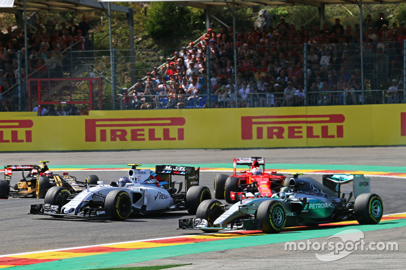 Росберг, который опередил Феттеля, прошел Боттаса в последней шикане к концу первого круга. Затем Боттас ошибся в La Source и его прошел Феттель.