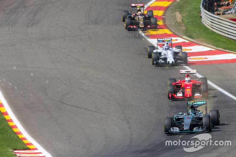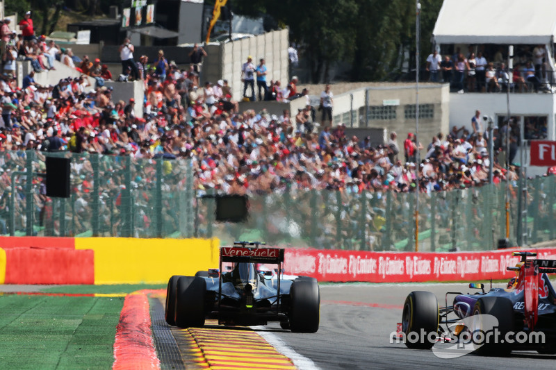 Тем временем, в Les Combes Грожан опередил Боттаса и перешел на пятое место. На втором круге его напарник по команде Lotus Пастор Мальдонадо замедлился на выходе из Eau Rouge со словами «Я потерял двигатель». Венесуэлец все же сумел довести машину до боксов.